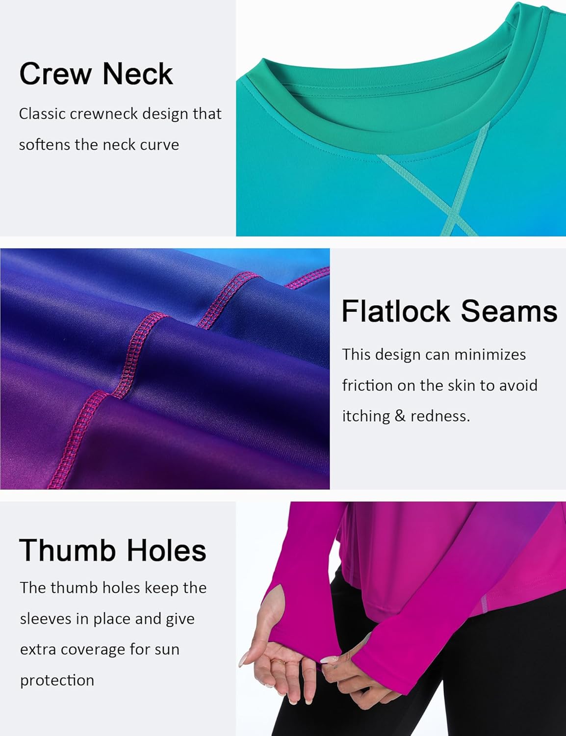 - 【Sun Protection】This long sleeve workout top provides professionally certified UPF 80+ sun protection,effectively protecting against UV rays.