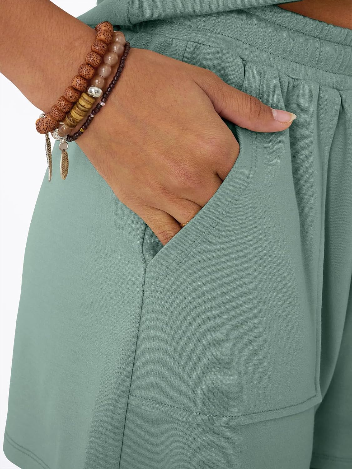 2 Piece V Neck Cap Sleeve Shirt and Shorts Set Womens Matching Summer Lounge Sets
